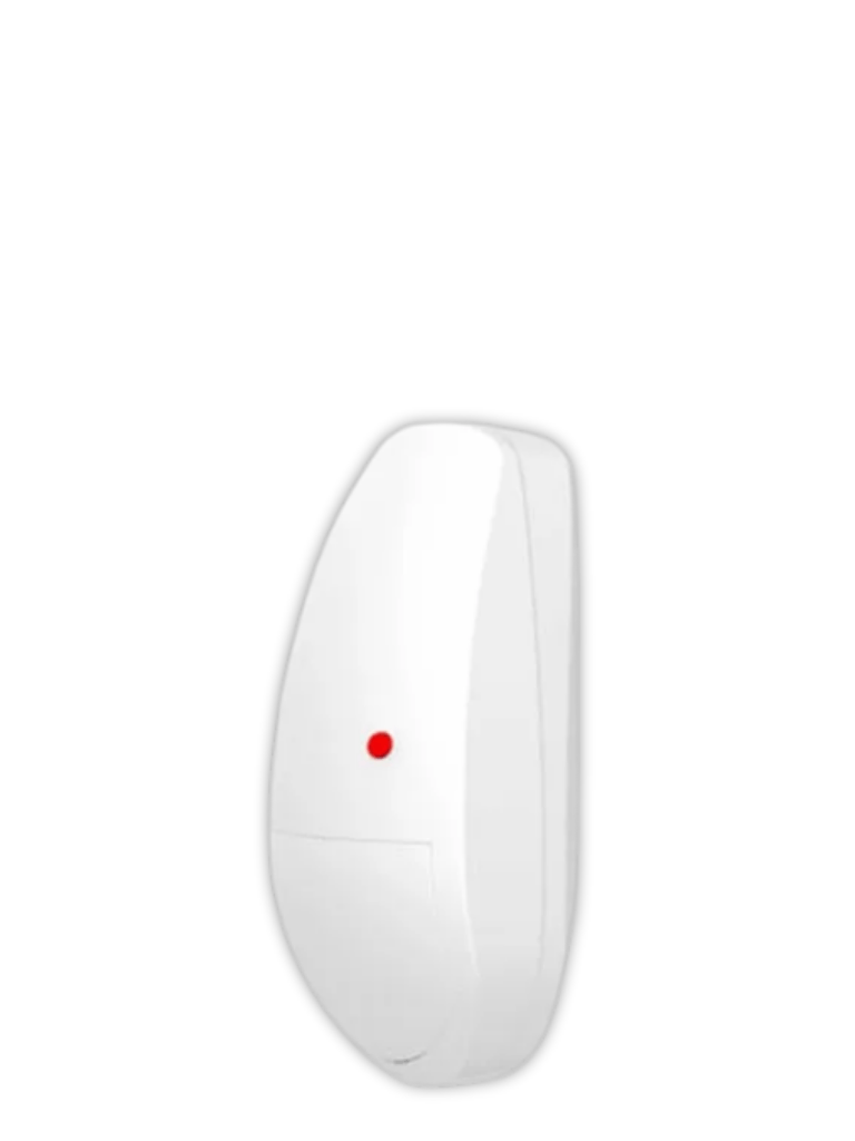 El sensor utiliza tecnología de detección infrarroja para captar cambios de temperatura en movimiento dentro de su rango de cobertura. Al detectar un intruso, envía una señal de alerta de forma inmediata al panel de control mediante radiofrecuencia. Es un dispositivo compacto, con un diseño moderno que se adapta discretamente a cualquier esquina o pared.