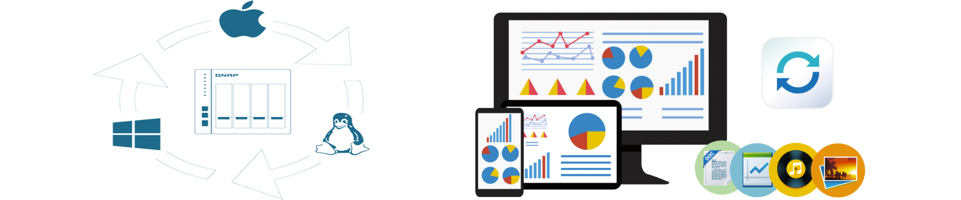 El TS-431XeU es compatible con los protocolos SMB/CIFS, AFP y NFS para el intercambio de archivos entre las redes de Windows, Mac y Linux/UNIX. Los datos pueden almacenarse de forma centralizarse en el NAS y protegerse con estrictas medidas de seguridad provistas por el TS-432XU-RP. Los servicios Windows AD y LDAP les permiten a los administradores del sistema configurar los permisos del usuario mediante un servidor existente Windows AD, LDAP o un servicio LDAP integrado. Para sincronizar datos entre dispositivos, incluyendo teléfonos móviles, sólo instale Qsync Central en el NAS y los clientes de Qsync en otros dispositivos para disfrutar de un servicio de sincronización de archivos rápido, privado, seguro y en tiempo real con el TS-432XU-RP.