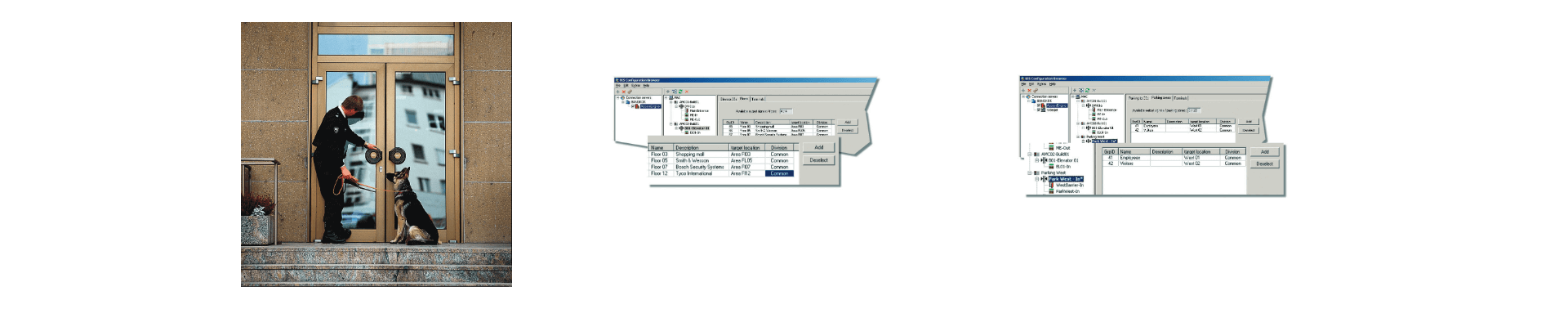 Un plan de acción (consulte los accesorios opcionales de BIS) muestra al operador la imagen del usuario de tarjeta almacenada en la base de datos del ACE, así como una imagen en directo de una cámara cercana a la entrada/lectora que envía la solicitud. El operador compara ambas imágenes y decide si abrir o no la puerta.
