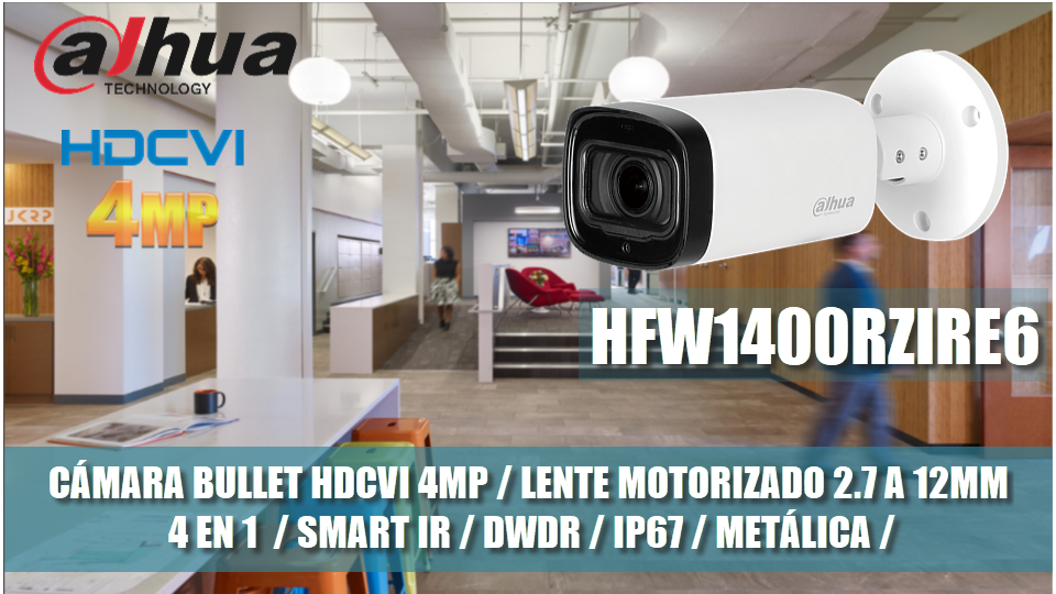 Con la cámara HFW1400RZIRE6 experimente el video de 4MP y la simplicidad de reutilizar la infraestructura coaxial existente con HDCVI, presenta un diseño compacto ofreciendo una imagen de alta calidad con detalles ricos cuenta con menu OSD multilenguaje.Su flexibilidad estructural y relación costo-rendimiento hacen de la cámara una opción ideal para pymes.