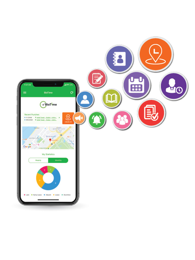 En combinación con los software de gestión centralizada Biotime 7.0, la App le permite operar como Empleado o como Administrador, ofreciendo funciones adicionales de monitoreo, gestión de solicitudes, visualización del historial de asistencia, entre otras características.