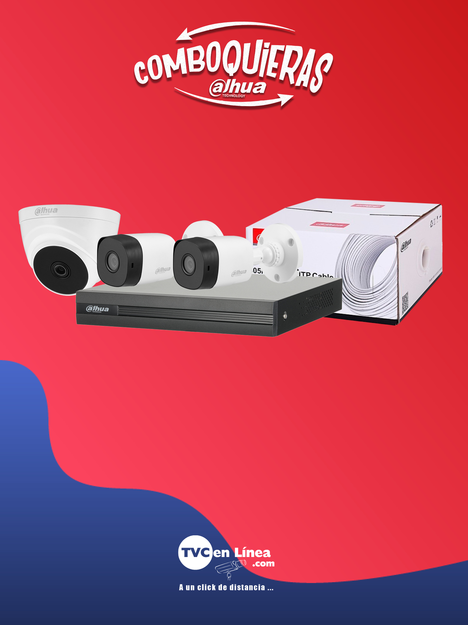 COMBOQUIERAS7B: KIT 4 CANALES 2 MEGAPIXELES / 2 CAMARAS B1A21 1080P + 2 CAMARAS CAMARA DOMO HDCVI 2MP/ LENTE DE 3.6MM + BOBINA DE CABLE UTP BLANCO 100% COBRE
