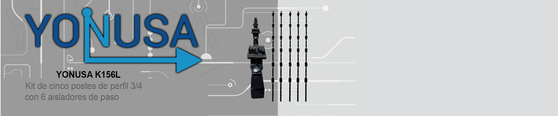 El YONUSA K156L es un kit de cerco eléctrico diseñado para brindar seguridad perimetral, compuesto por 5 postes de acero de perfil 3/4, con una altura de 1.20 metros y color negro, y 6 aisladores de paso que permiten instalar hasta 6 líneas de alambre con 15 cm de separación. Este sistema funciona conectado a un energizador, que convierte corriente alterna en pulsos eléctricos de alto voltaje pero bajo amperaje, generando un shock no letal que disuade a los intrusos. Este kit está listo para instalación en campo, ofreciendo una solución eficiente y económica para la protección perimetral.