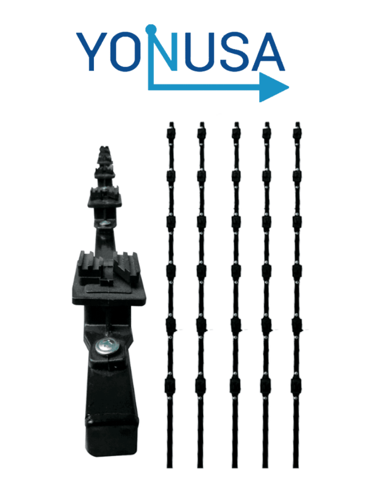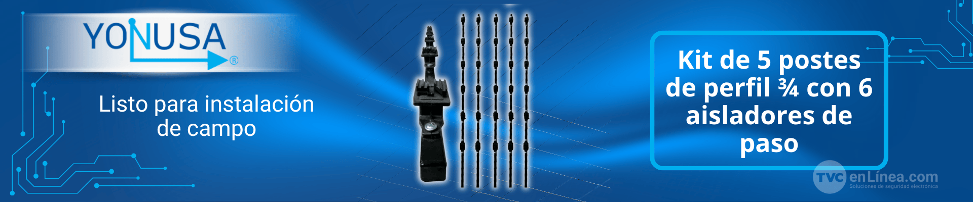El YONUSA K156L es un kit de cerco eléctrico diseñado para brindar seguridad perimetral, compuesto por 5 postes de acero de perfil 3/4, con una altura de 1.20 metros y color negro, y 6 aisladores de paso que permiten instalar hasta 6 líneas de alambre con 15 cm de separación. Este sistema funciona conectado a un energizador, que convierte corriente alterna en pulsos eléctricos de alto voltaje pero bajo amperaje, generando un shock no letal que disuade a los intrusos. Este kit está listo para instalación en campo, ofreciendo una solución eficiente y económica para la protección perimetral.