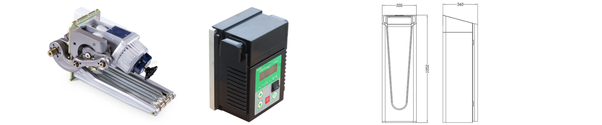 Servomotor DC Blushless con control de conversión de frecuencia, permite un desplazamiento suave del brazo de la puerta sin rebote en la posición final.