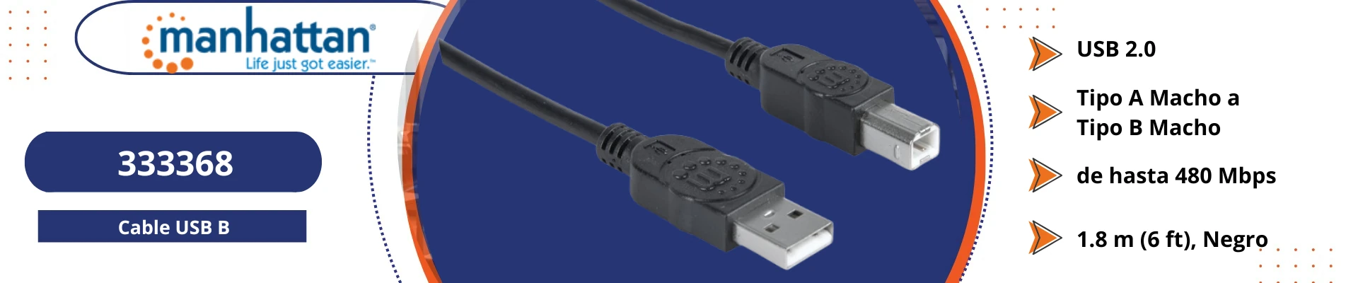 Permite transferencias de datos rápidas y confiables de hasta 480 Mbps, siendo compatible con sistemas Windows y Mac. Su construcción blindada y conectores con contactos chapados en oro ayudan a reducir interferencias y mejorar la calidad de la señal.