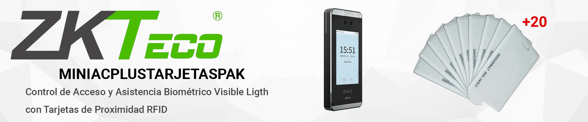 ZKTECO MINIACPLUSTARJETASPAK - Control de Acceso y Asistencia Facial Visible Light con 20 tarjetas de proximidad incluidas / ¡Paga 10 y llévate 10 GRATIS! / #TarjetasGratis