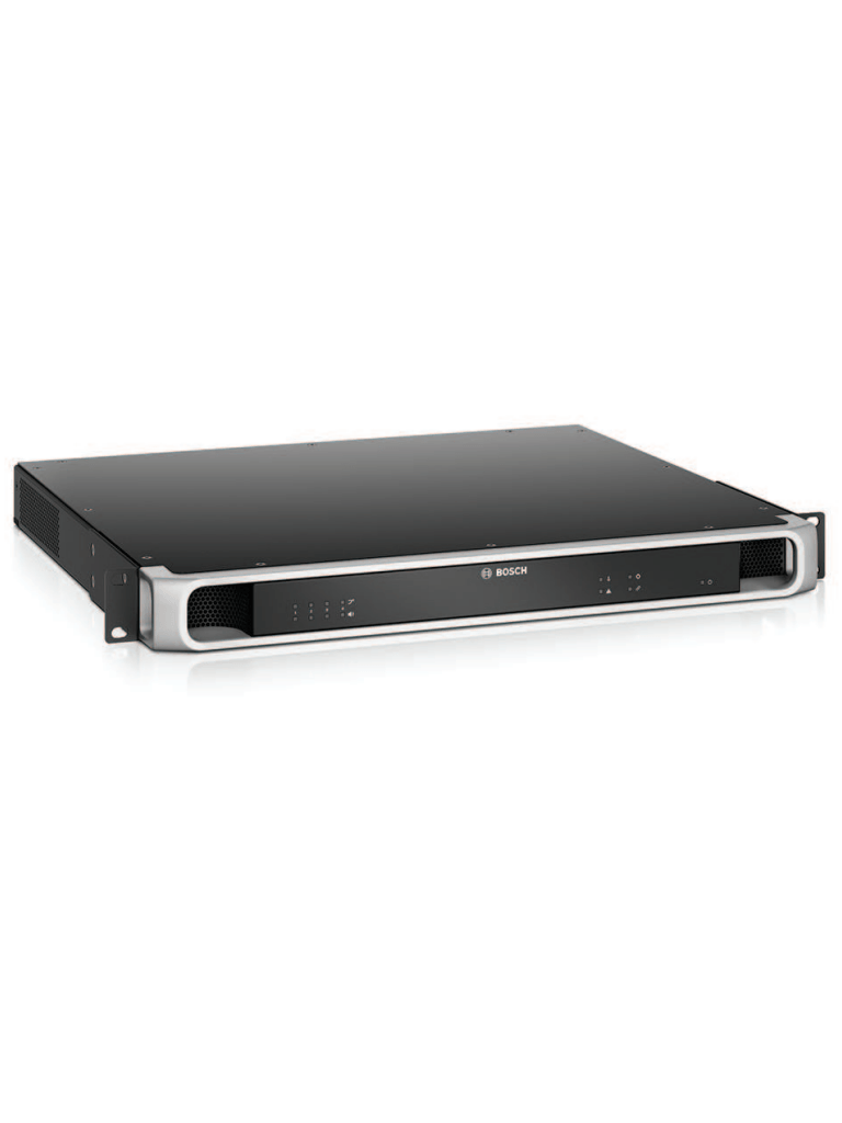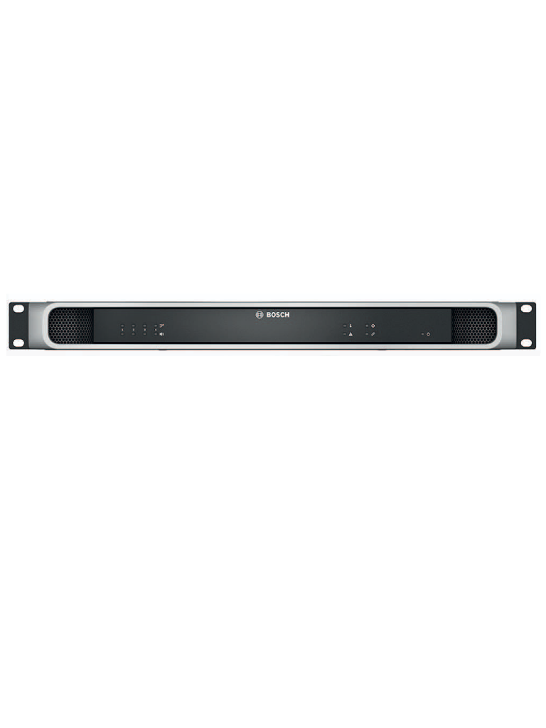 El amplificador de 4 canales en red IP está diseñado exclusivamente para su uso con sistemas Bosch PRAESENSA. El amplificador debe adaptar la potencia de salida máxima de cada canal de amplificador a su carga de altavoz conectado, con potencia de salida asignable libremente por canal para un máximo total de 600 vatios por amplificador, compatible con el funcionamiento de 70 V o 100 V con capacidad de accionamiento directo y salidas que están galvánicamente aisladas de la toma de tierra. El amplificador tiene un canal de amplificador de reserva independiente integrado para la conmutación por error automática. El amplificador proporciona una interfaz para los datos de control y audio digital multicanal a través de OMNEO utilizando puertos Ethernet duales para la conexión de red redundante, admite RSTP y cableado en bucle con conmutación por error automática a una entrada de respaldo analógica. El amplificador tiene entradas de fuente de alimentación duales y fuentes de alimentación. Todos los canales de amplificador tienen salidas de zona A/B independientes con soporte para bucles de altavoces de clase A. Todos los canales de amplificador supervisan la integridad de las líneas de altavoces conectados sin interrupción de distribución de audio. El amplificador proporciona indicaciones de estado LED en el panel frontal del enlace de red, los fallos de toma de tierra, las fuentes de alimentación y los canales de audio y ofrecen supervisión de software adicional y funciones de notificación de fallos. El amplificador se puede montar en rack (1U) e incluye procesamiento de señales configurable mediante software con control de nivel, ecualización de parámetros, limitación y retardo para cada canal. El amplificador se certifica para EN 54-16 / ISO 7240-16, cuenta con marcado CE y cumple la Directiva sobre restricciones de ciertas sustancias peligrosas (RoHS).