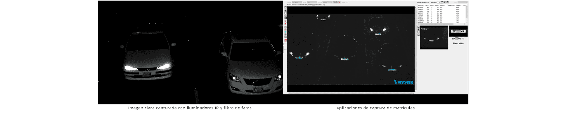 La captura de imágenes por la noche es un desafío para cualquier aplicación de vigilancia, pero para las aplicaciones de captura de matrículas el desafío es aún mayor debido al ruido y el deslumbramiento causado por los faros de los automóviles. El kit IP9165-LPC está equipado con iluminadores IR externos de 48 W/80 W y un delicado filtro de faro, que ayudan a filtrar la luz reflejada y solo capturan información detallada de las placas. Además, el umbral IR también está programado para desplegar el iluminador IR automáticamente para garantizar un rendimiento 24/7 y día/noche.
