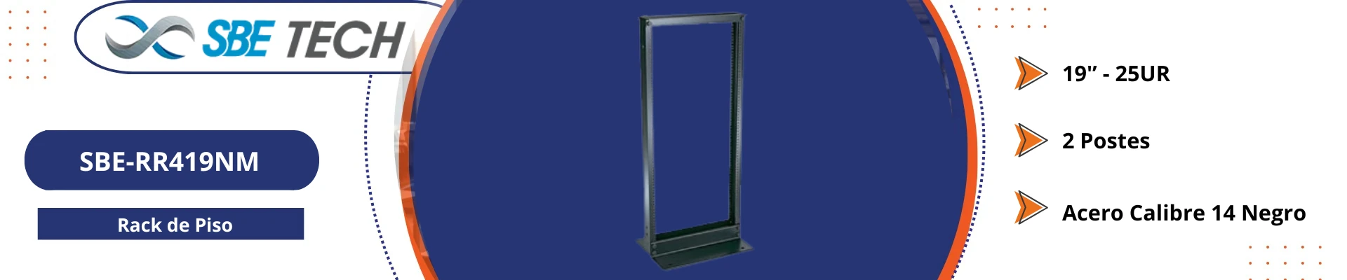 El SBE TECH SBE-RR419NM es un rack abierto de acero diseñado para alojar equipos de telecomunicaciones con estándar de 19 pulgadas, ofreciendo una solución robusta y confiable para la organización, montaje y operación de equipos activos en instalaciones profesionales.