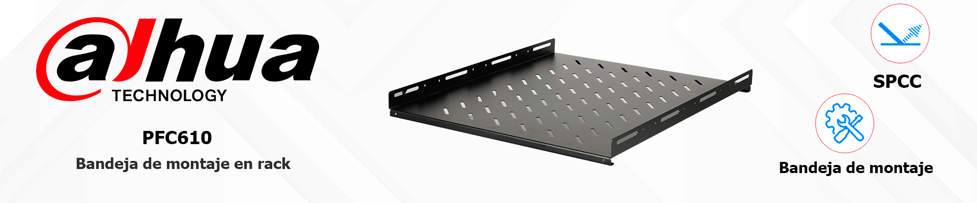 El modelo DAHUA PFC610-8D , es una charola fija ventilada compatible con cualquier gabinete 19'' de ancho, diseñada especialmente para switches, DVR o algún otro equipo electrónico.