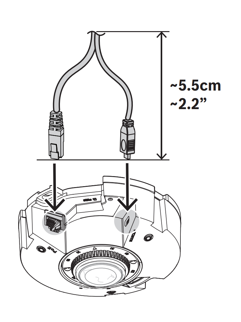 La cámara dispone de una salida HDMI con resolución de hasta 1080p para la transmisión en directo a un sistema de vigilancia público, ideal para su uso en comercios o para visualización de vídeo local. Mediante su conector micro HDMI, la cámara puede mostrar el círculo completo de la imagen.