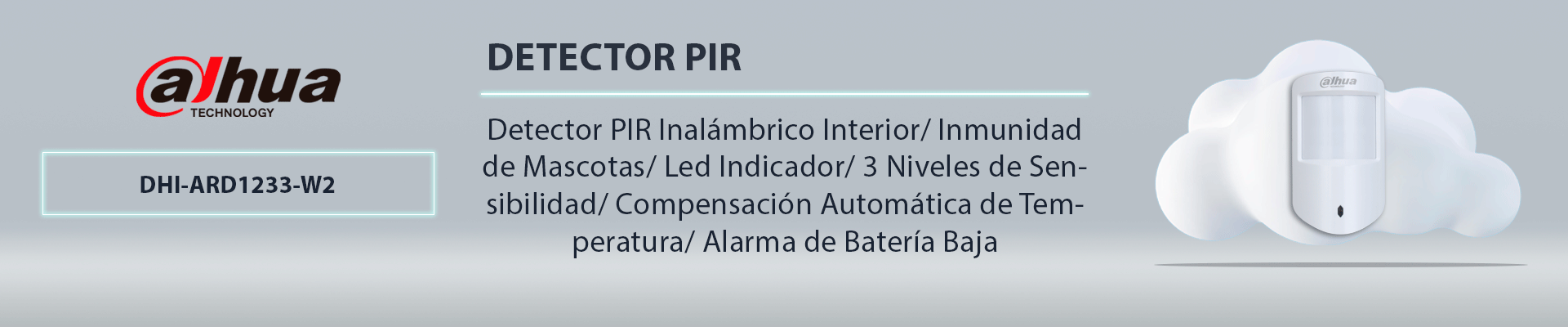 El DHI-ARD1233-W2 es un detector de movimiento PIR inalámbrico que detecta la presencia de personas o grandes animales en un área protegida, enviando alertas en caso de intrusión. Su diseño incluye inmunidad a mascotas de hasta 18 kg, compensación automática de temperatura y ajuste de sensibilidad en tres niveles para mejorar su precisión. Gracias a su tecnología de comunicación bidireccional con salto de frecuencia, ofrece una conexión estable y segura. Es ideal para su instalación en villas, tiendas y apartamentos, proporcionando una detección confiable en interiores.