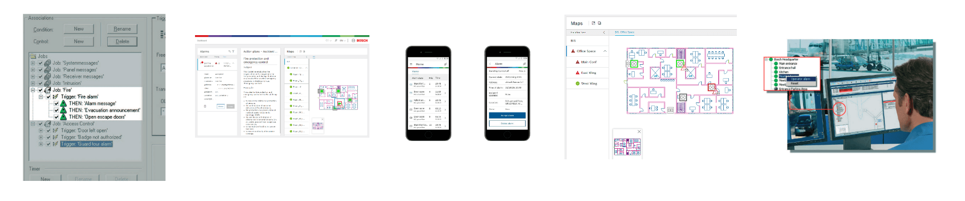 Los motores de BIS ofrecen detección de incendios e intrusiones, control de acceso, videovigilancia, megafonía y alarmas, además de control de aire acondicionado y calefacción y otros sistemas importantes para edificios.