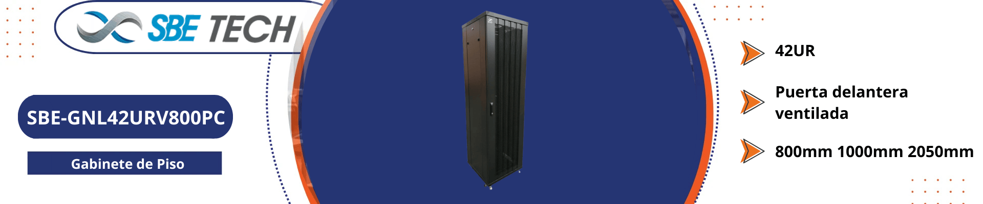 Gabinete de piso 42UR ventilado, diseñado para telecomunicaciones y para alojar equipamiento activo y pasivo.