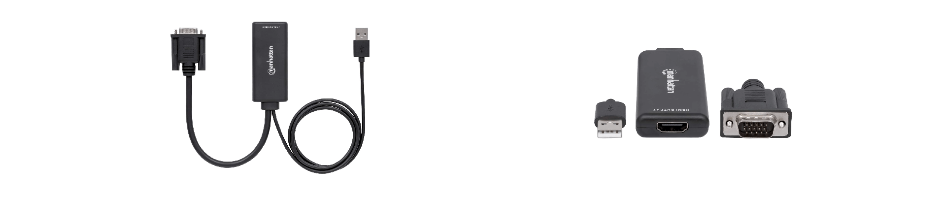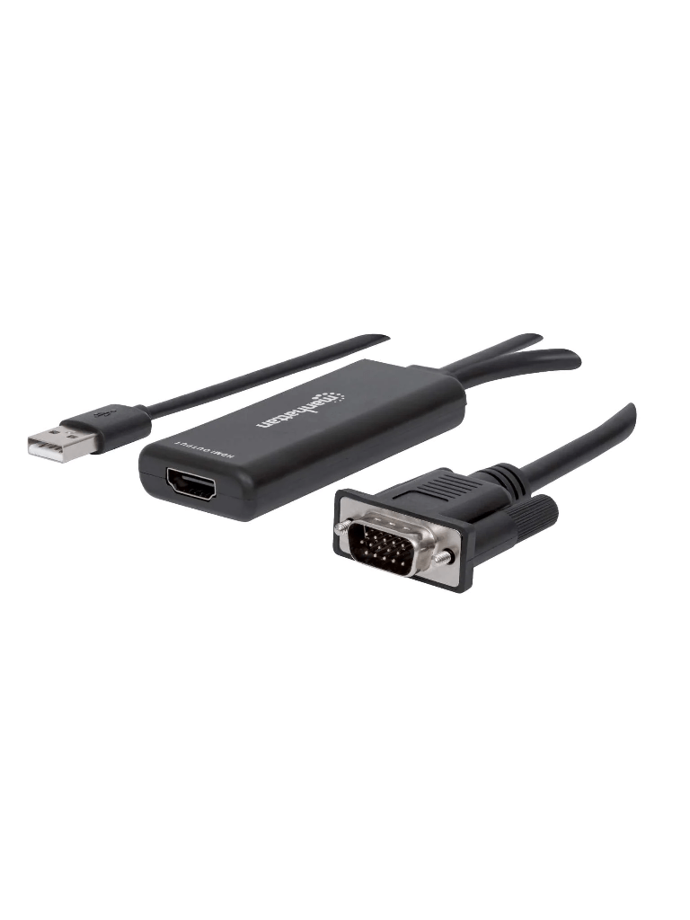 Convierte señales análogas audio/video desde una PC en señal digital HDMI.El Convertidor Manhattan VGA y USB a HDMI traduce señales análogas de audio/video de PC a formatos HDMI para proyectores, pantallas de alta definición, televisiónes y más dispositivos compatibles. Su avanzada circuitería integrada te permite disfrutar fácilmente del contenido de una PC en pantallas de alta definición o televisiones y mantén simultaneamente la recepción de audio y video en la PC. Su capacidad de ancho de banda soporta resoluciones de video de hasta 1920 x 1080 y 1080p@60Hz, permite atender propositos en capacitaciones, retail y exposiciones. Su rápida instalación Plug and Play y compatibilidad con Windows y Mac, facilitan al Convertidor de VGA y USB a HDMI entregar contenido digital almacenado en cualquier computadora de escritorio o portátil.Convierte fácilmente video análogo VGA y audio USB a una señal digital HDMI