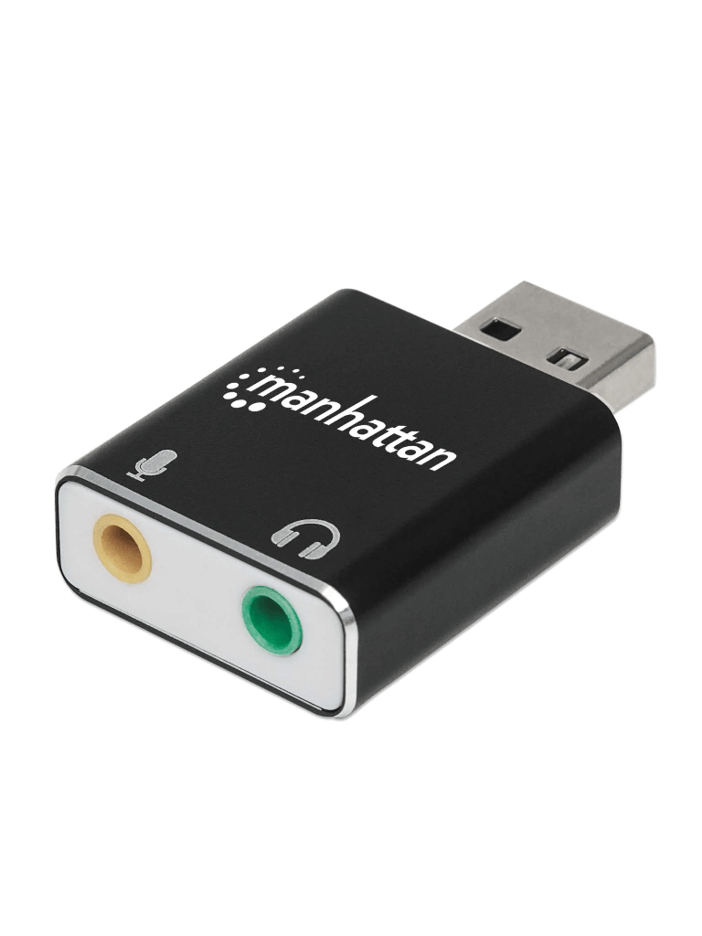 MANHATTAN 152754 Adaptador de Sonido Estéreo USB de Alta Velocidad USB-A a Puertos de 3.5 mm para Entrada de Micrófono y Salida de Audio