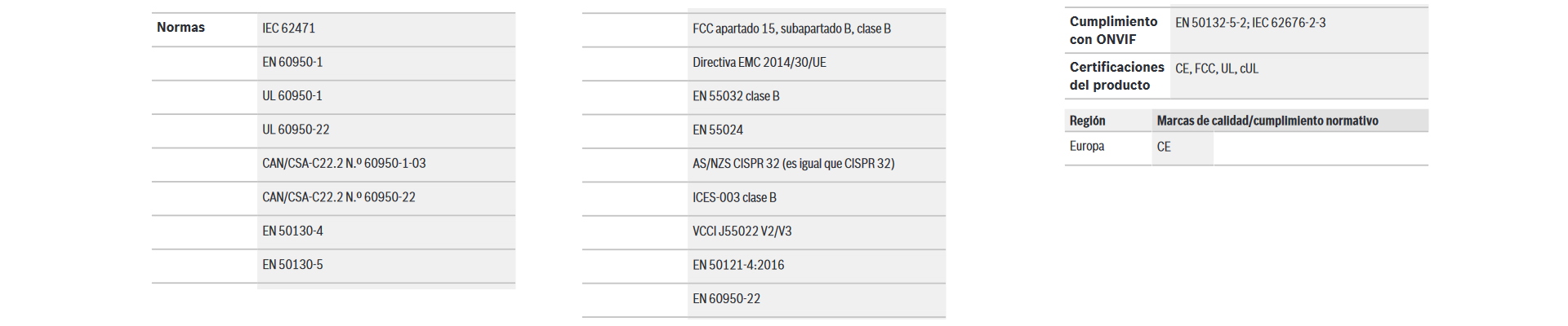 La cámara cumple con las especificaciones de ONVIF Profile G, ONVIF Profile M, ONVIF Profile S y ONVIF Profile T. Esto garantiza la interoperabilidad entre productos de vídeo en red de cualquier fabricante.