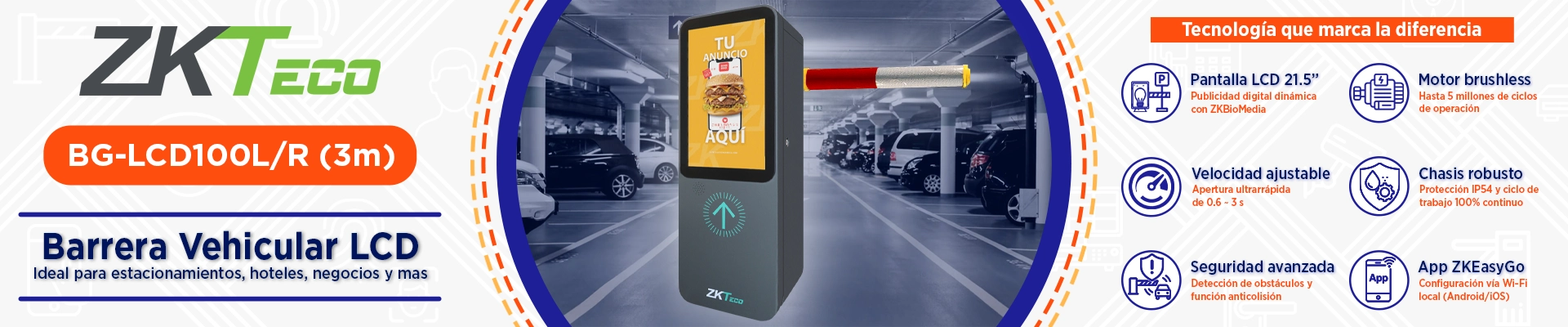 La BG-LCD100L/R de ZKTeco es una barrera vehicular inteligente que combina control de accesos y publicidad digital en un solo equipo. Incorpora una pantalla LCD TFT de 21.5” con sistema Android, diseñada para mostrar anuncios dinámicos y mensajes corporativos mediante el software ZKBioMedia, lo que elimina los costos de impresión, instalación y mantenimiento de lonas publicitarias tradicionales. Este modelo es ideal para hoteles, edificios corporativos, centros de negocios y estacionamientos premium, donde la eficiencia operativa y la imagen de marca son clave.