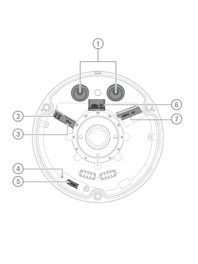 Inserte una tarjeta de memoria en la ranura para tarjeta para almacenar una grabación con alarma local de hasta 2 TB. La grabación previa a la alarma en la RAM reduce el ancho de banda de grabación en la red y amplía la vida efectiva de la tarjeta de red.