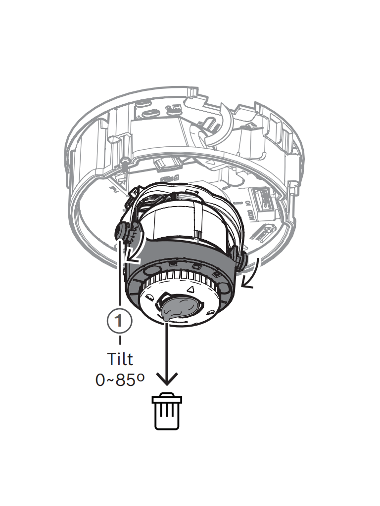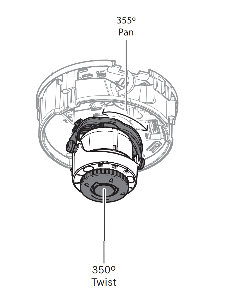 El diseño de la estructura modular utiliza un mecanismo de clic y giro en la placa de montaje o en la base que no requiere elementos de fijación para montar la cámara en la carcasa para una instalación rápida y compatible con diversas opciones de montaje.