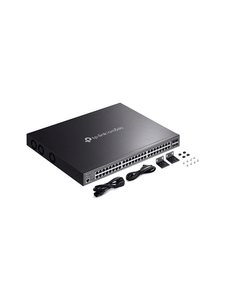 Es un dispositivo de red gestionado que cuenta con una tabla de direcciones MAC capaz de almacenar hasta 16000 entradas. Este switch también ofrece enrutamiento basado en políticas y soporte para Energía sobre Ethernet (PoE). Dispone de 48 puertos básicos RJ-45 Ethernet, cada uno con capacidad PoE+ hasta los 30 W por puerto, lo que permite alimentar dispositivos compatibles sin necesidad de fuentes externas. También tiene un presupuesto total máximo para potencia PoE alcanzando los 384W.