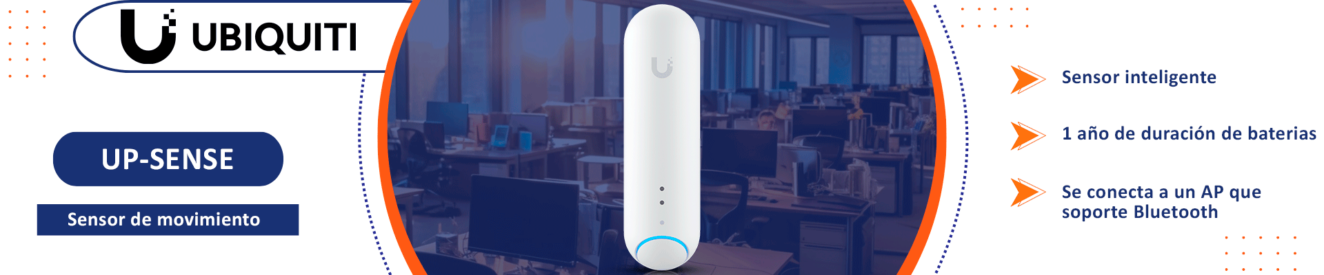 UBIQUITI UP-SENSE - Sensor de movimiento inteligente, detecta movimiento , temperatura, humedad, luz ambiental, sonido de alarma , detecta el estado de puertas y ventanas, 1 año de duración de baterias, se conecta a un AP que soporte Bluetooth.
