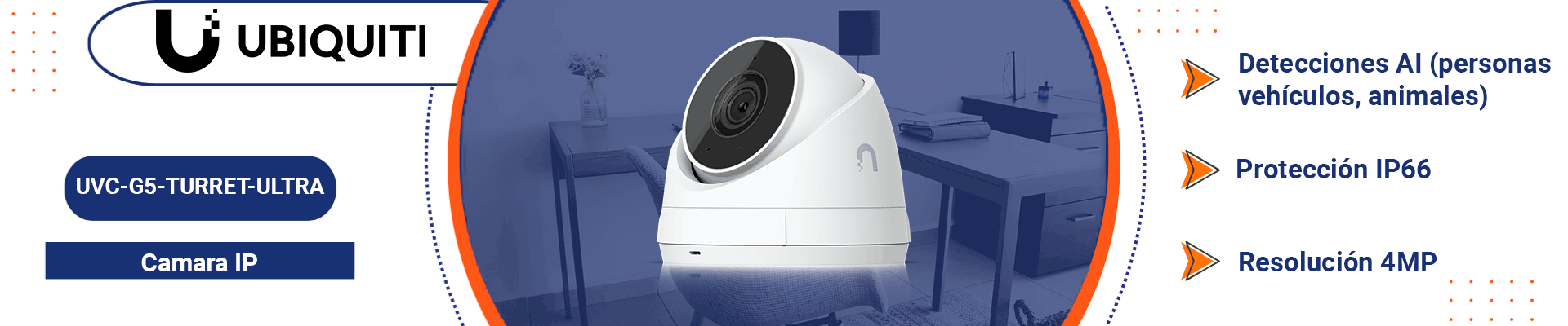 La UVC-G5-Turret-Ultra es una cámara de videovigilancia profesional diseñada para ofrecer alta calidad de imagen, fácil instalación y gran confiabilidad dentro del ecosistema UniFi Protect de Ubiquiti.