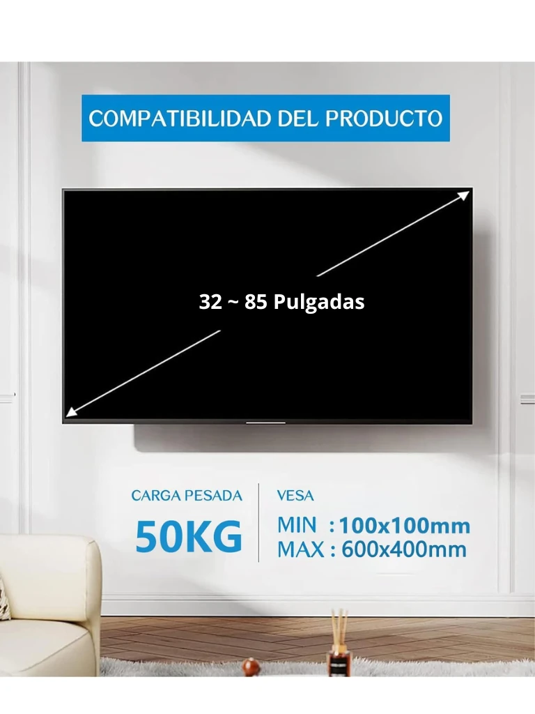 Soporta pantallas de gran tamaño, desde 32 hasta 85 pulgadas.
