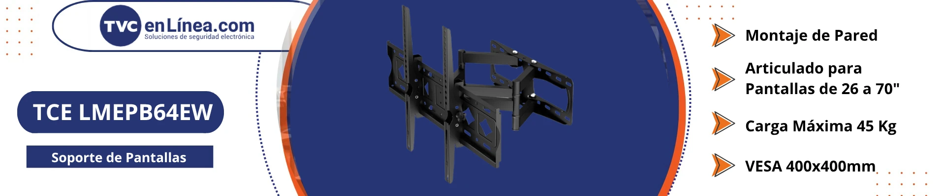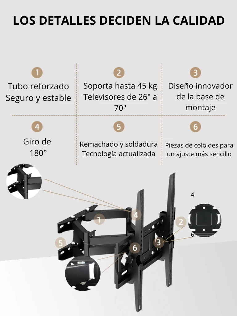 Soporta pantallas de gran tamaño, desde 26 hasta 70 pulgadas.