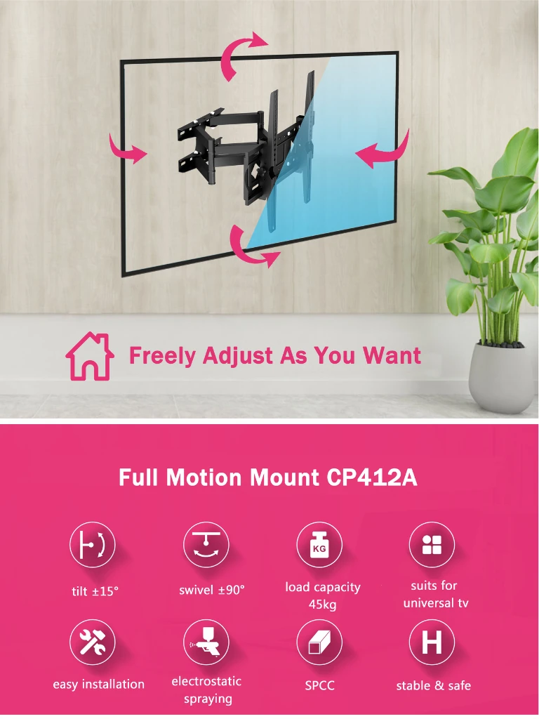 Ideal para televisores LED, LCD y otros modelos grandes que requieren una montura de pared segura y ajustable.