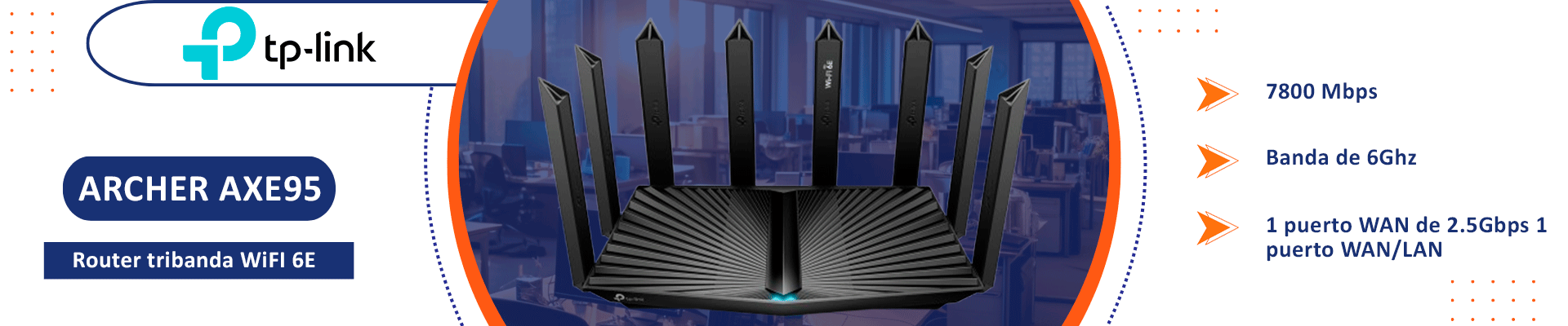Es un router tribanda WiFi 6E de alto rendimiento que ofrece velocidades de hasta 7800 Mbps, con soporte para la nueva banda de 6 GHz, lo que mejora la capacidad y la eficiencia de la red. Con un puerto WAN de 2.5 Gbps y puertos LAN Gbps, proporciona conexiones ultra rápidas y estables. Además, es compatible con OneMesh para crear una red de malla sin interrupciones, y cuenta con TP-Link HomeShield, que protege contra ciberataques. También es compatible con Alexa, lo que permite controlar la red mediante comandos de voz. Ideal para hogares con múltiples dispositivos y necesidades de alto ancho de banda.