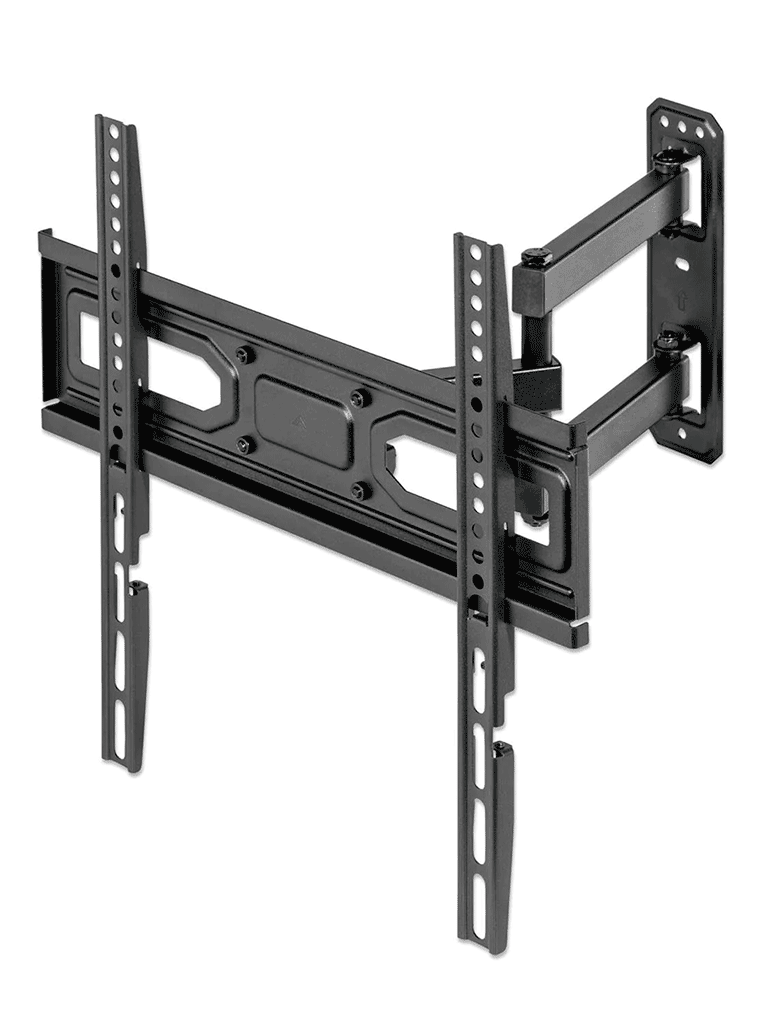 MANHATTAN - 462419 - Soporte con brazo articulado para pantalla / Soporta una pantalla de 32" a 55" de hasta 35 kg (77 lbs.), opciones de ajuste para inclinación, giro y nivelación posterior a la instalación, negro