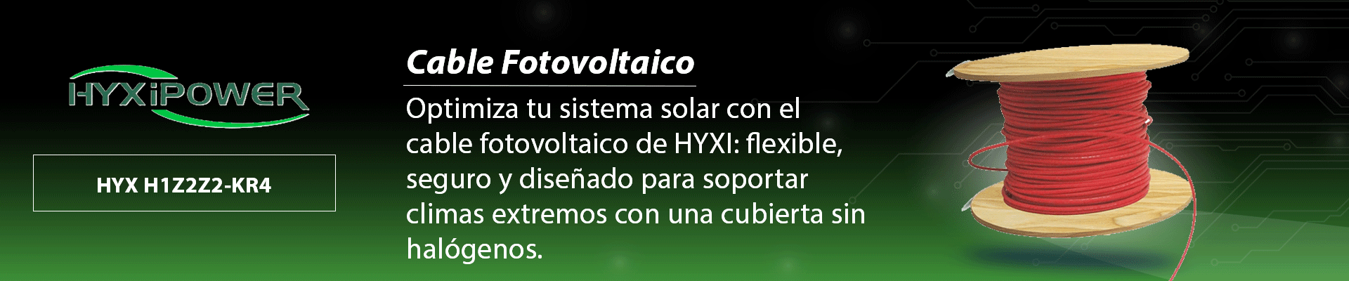 El cable fotovoltaico HYX H1Z2Z2-KR4 de 4mm² es especialmente diseñado para sistemas solares, garantizando seguridad y durabilidad en condiciones climáticas adversas. Fabricado con cobre recocido y estañado, cuenta con aislamiento reticulado por haz de electrones y cubierta libre de halógenos que ofrece resistencia a la humedad y a la corrosión. Su diámetro total de 6.1 mm lo hace eficiente y seguro en instalaciones solares de alto rendimiento. Compatible con conectores MC4, cumple con normativas de seguridad internacionales para aplicaciones exigentes.