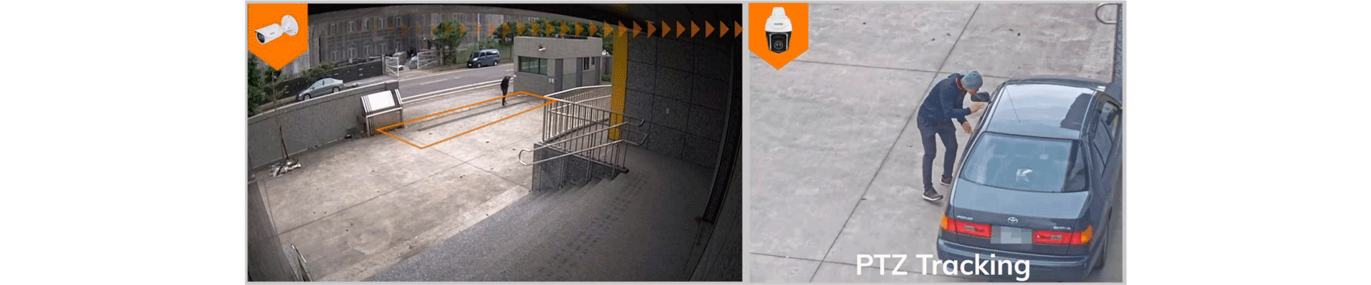 Camera Link es una función que permite que las cámaras PTZ de VIVOTEK hagan zoom automáticamente en ubicaciones preestablecidas y comiencen a rastrear un objeto cuando la cámara "detectora" activa la alarma dentro del mismo sistema de vigilancia. La conexión de Camera Link entre cámaras no requiere un sistema VMS. Por lo tanto, se minimiza el tiempo de demora y se mejora la eficiencia de la operación. También es ideal para situaciones en las que las cámaras se instalan lejos de la estación de trabajo VMS.