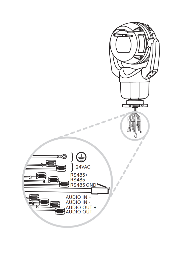 La cámara se puede alimentar a través de una red compatible con alta alimentación a través de Ethernet usando un modelo de Bosch de Midspan PoE de alta potencia (se vende por separado). Con esta configuración, solo se necesita una única conexión de cable (par trenzado blindado o STP Cat5e/Cat6) para ver, alimentar y controlar la cámara.