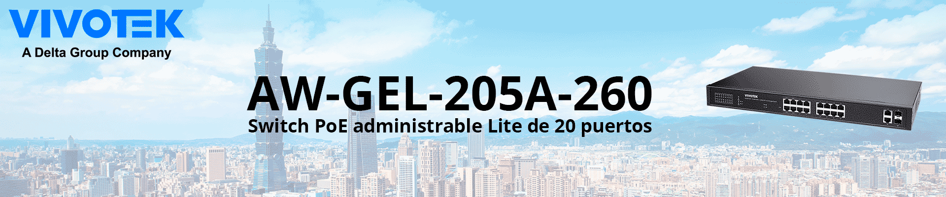 VIVOTEK AW-GEL-205A-260 - Switch PoE 20 puertos Administrable Lite, 16 puertos GE 30W PoE, 4 puertos GE 90W PoE, 2 puertos GE UTP, 2 puertos GE SFP lite, 40 Gbps, 260W totales, PoE Extendido 250 Mts, NDAA