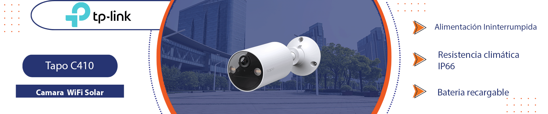 La Tapo C410 es una cámara WiFi inalámbrica con batería recargable que permite instalación sin cables y ofrece video en Full HD 1080p con visión nocturna a color. Incorpora IA para detección inteligente de personas, mascotas y vehículos, reduciendo falsas alertas, y su diseño con certificación IP65 la hace resistente a exteriores. Con hasta 180 días de autonomía, compatibilidad con Alexa y Google Home, y opciones de almacenamiento local o en la nube con Tapo Care, brinda seguridad confiable y flexible.