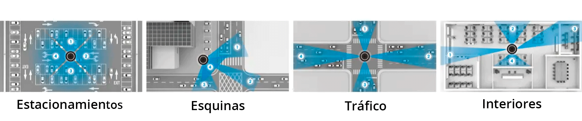 La cámara de IA panorámica multidireccional serie V cuenta con sensor un CMOS Progresivo de 1/2.8", IR con alance de 30 m y tecnología WDR, lo que garantiza imágenes nítidas y claras con mínimo ruido en condiciones de baja iluminación y alto contraste, y la hace ideal para una vigilancia panorámica 24/7.