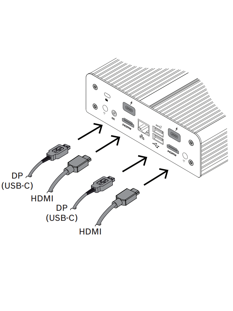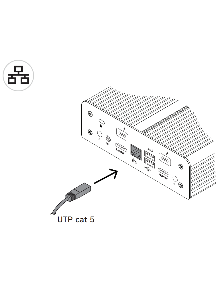 VIDEOJET decoder 7000 proporciona una salida HDMI y una salida DisplayPort (mediante un conector USB-C), ambas capaces de hacer funcionar monitores hasta 4K UHD simultáneamente. El dispositivo utiliza un puerto 10/100/1000 Base-T.