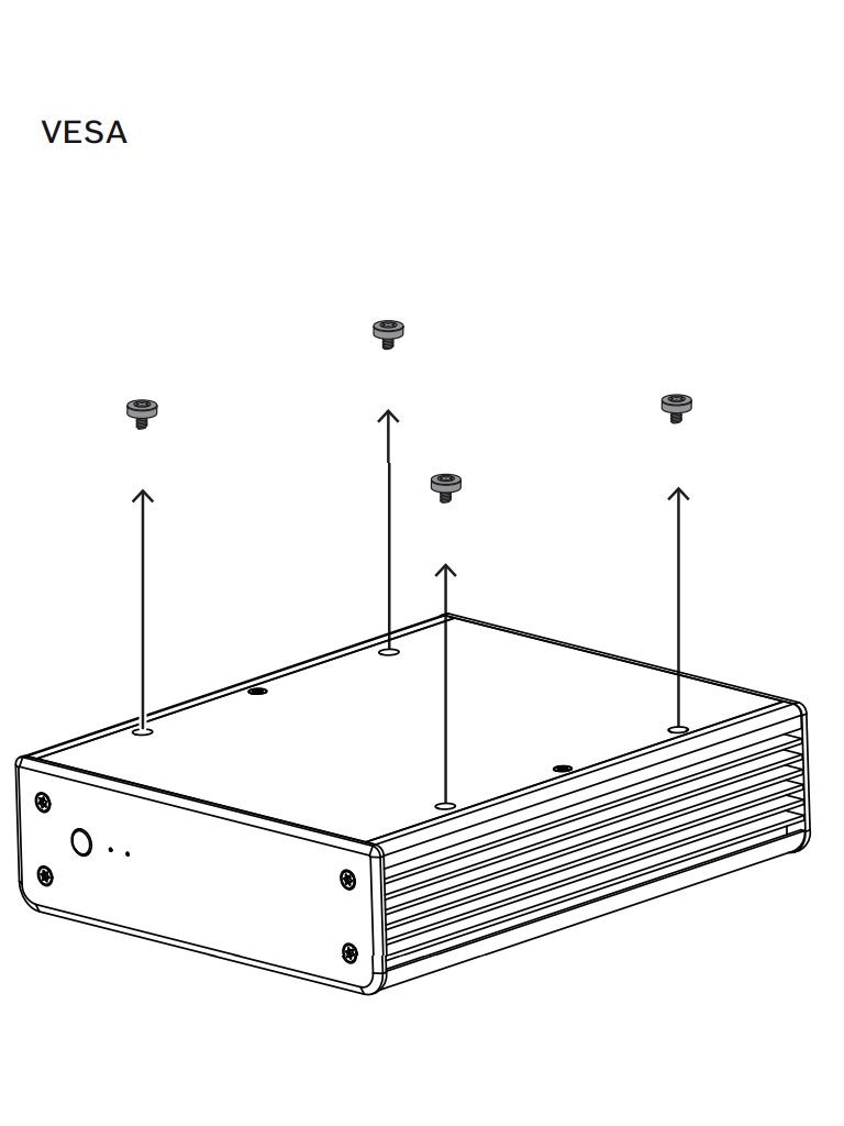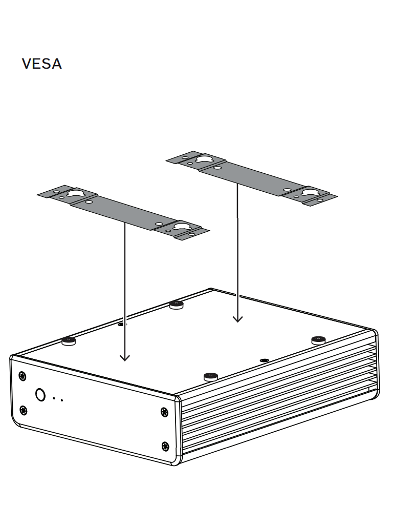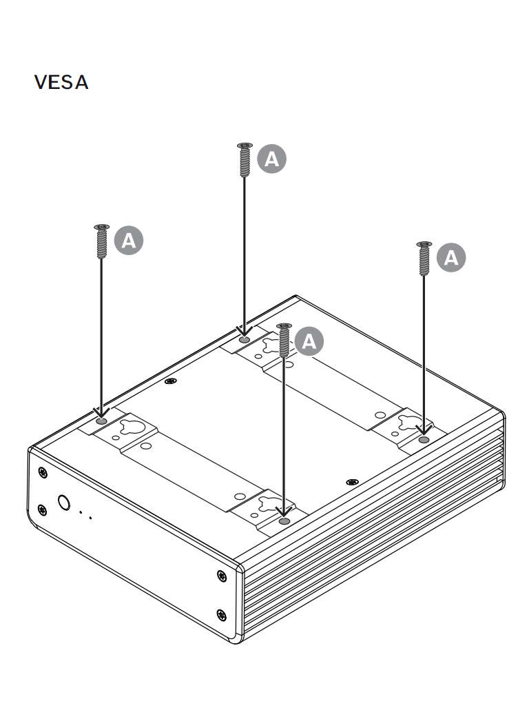 El sistema está protegido por una carcasa de diseño especial. Se puede montar directamente en la parte posterior del monitor o monitor de pared con la opción de soporte VESA de 100 mm (3.937 pulg.).