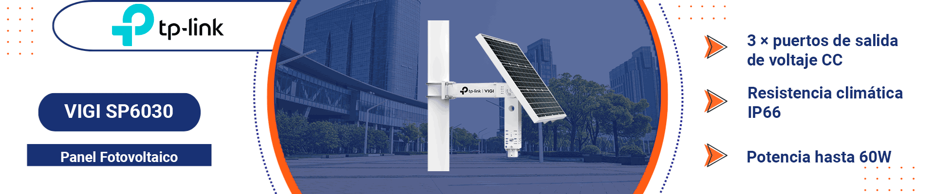 El VIGI SP6030 es un panel solar diseñado específicamente para alimentar cámaras IP, brindando una solución energética eficiente y confiable en zonas donde no se dispone de corriente eléctrica directa.