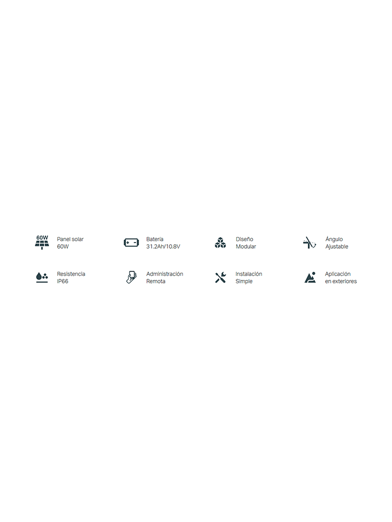 Incluye todos los accesorios necesarios para fijación segura y conexión resistente al agua, lo que facilita su implementación en exteriores, incluso en zonas remotas sin acceso a energía eléctrica.