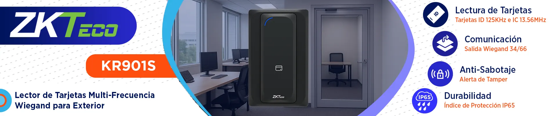 El lector KR901S es un dispositivo de lectura RFID de alta seguridad compatible con tarjetas de 125 KHz y 13.56 MHz. Este lector cuenta con alarma anti-sabotaje y con comunicación por medio de Wiegand 34/66 y adicionalmente también cuenta con un índice de protección IP65.