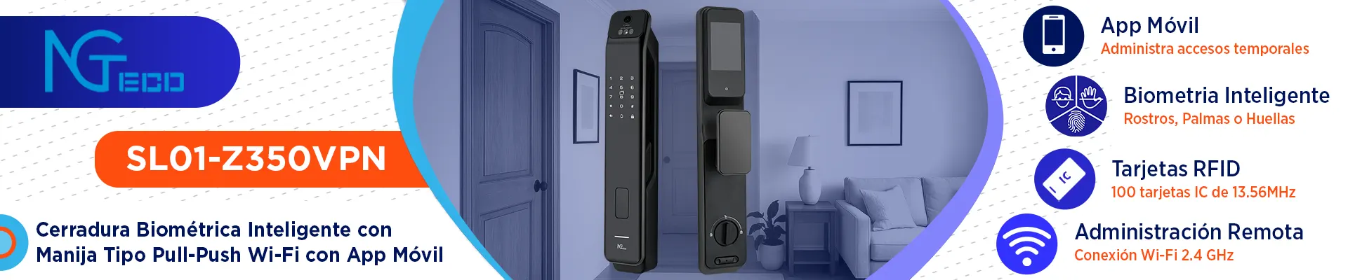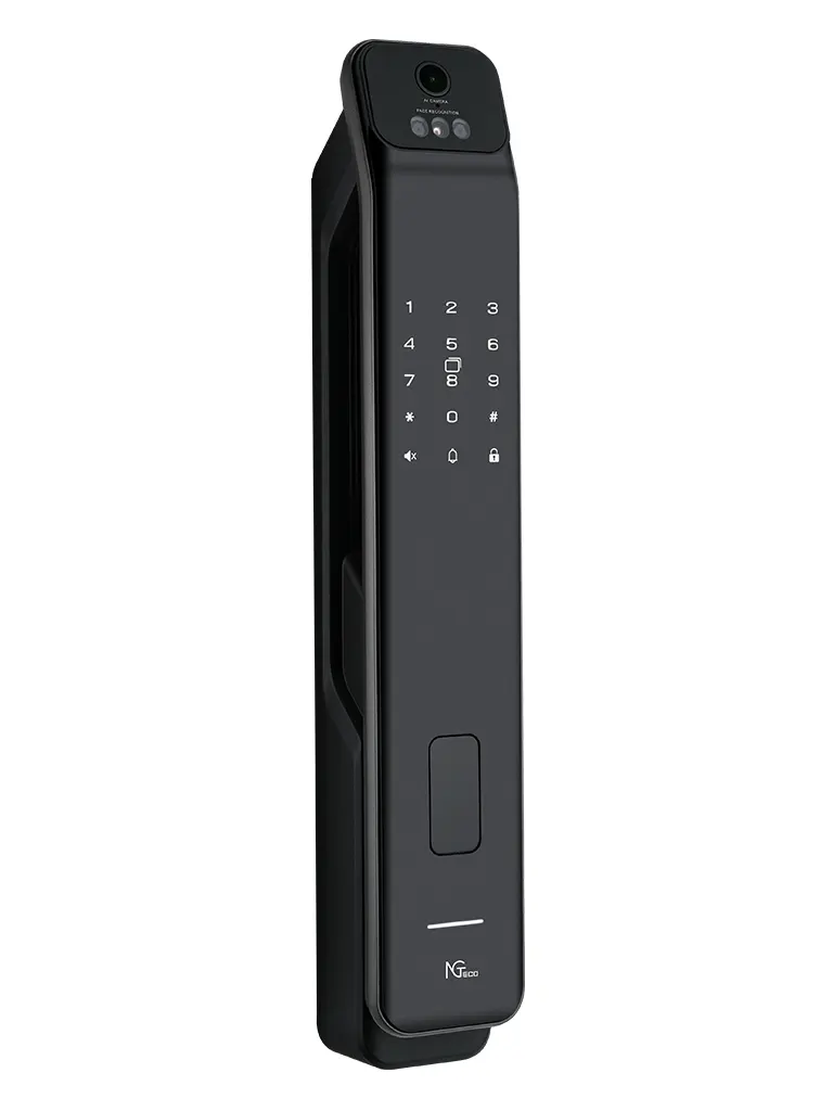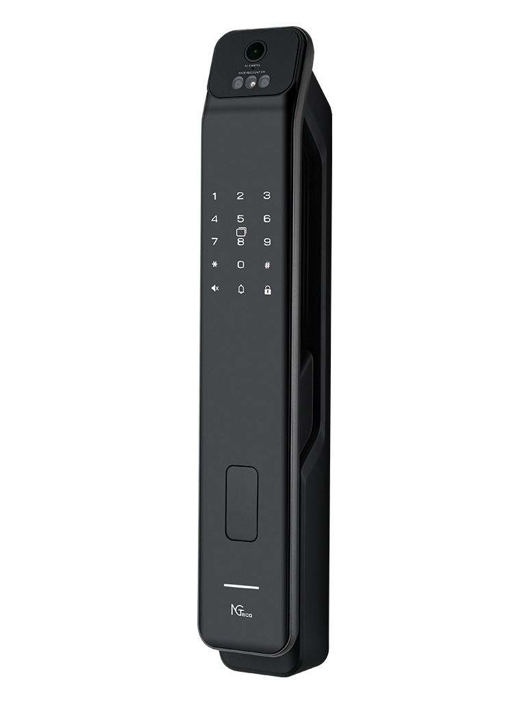 La SL01-Z350VPN es una cerradura inteligente de reconocimiento de huellas dactilares totalmente automático que ofrece una amplia gama de funciones avanzadas. Además del reconocimiento facial, el producto incluye un timbre incorporado y un diseño de manija PUSH-PULL, creando un ambiente de alta gama y convirtiéndolo en una excelente opción para cerraduras de puertas residenciales. Es compatible con la tecnología Wi-Fi, que se gestiona a través de la aplicación NGTeco home. Esta función permite a los usuarios controlar de forma remota la cerradura para abrir la puerta cuando un visitante solicita acceso.