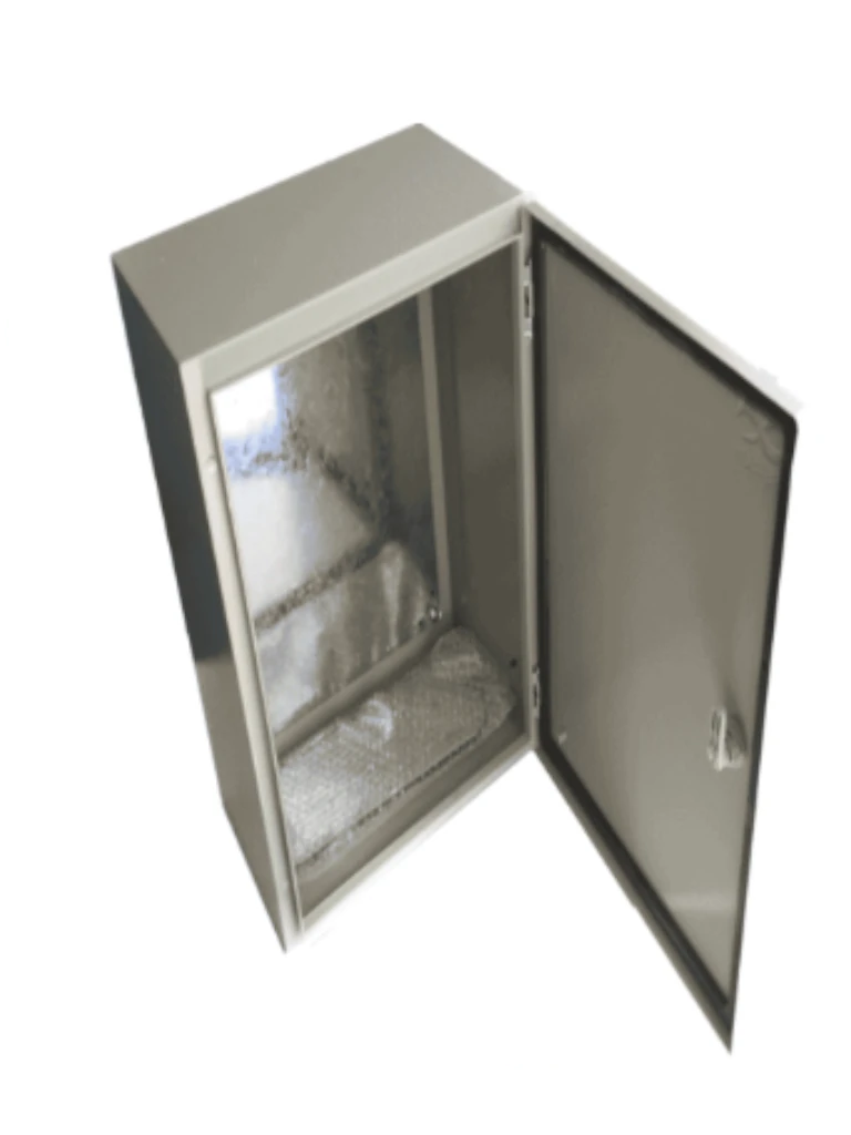 Gabinete metálico con platina diseñado para interiores y exteriores, ideal para aplicaciones industriales y protección de equipamiento en ambientes con polvo y lluvia. Su grado de protección IP66 / NEMA 4 garantiza un excelente sellado y resistencia a condiciones adversas.