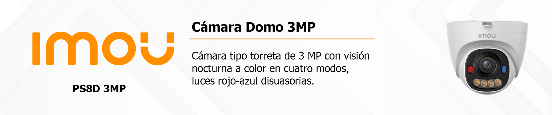 La cámara Imou PS8D 3 MP ofrece una vigilancia clara y confiable con visión nocturna avanzada, detección inteligente y luces de advertencia rojo-azul. Su diseño IP67 la hace ideal para exteriores, y su compatibilidad PoE simplifica la instalación. Permite grabar en nube, NVR o tarjeta micro SD.