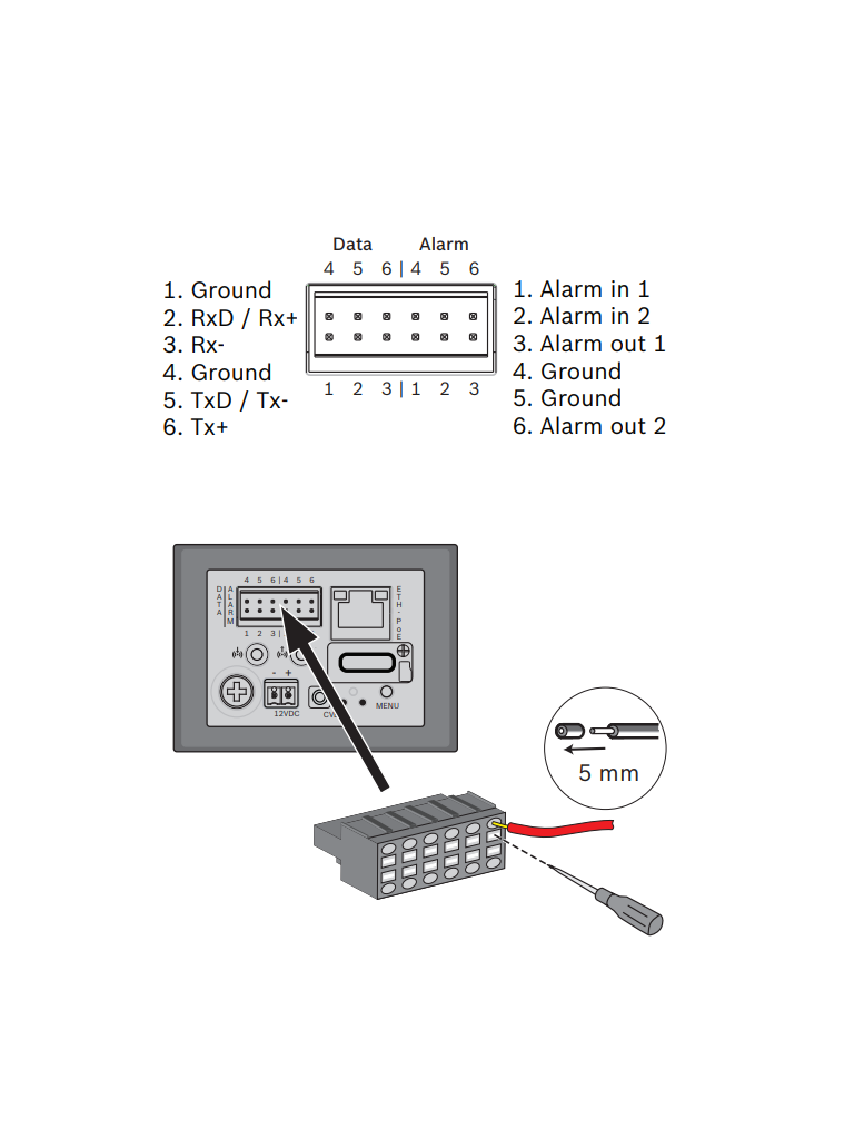 1 Conector de datos/alarma (12 patillas)