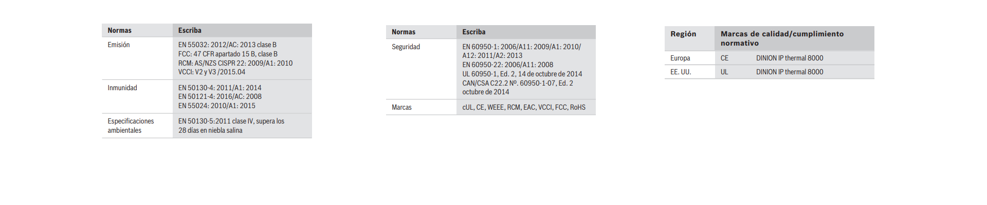 La cámara cumple con las especificaciones de ONVIF Profile S. El cumplimiento de estos estándares garantiza la interoperabilidad entre productos de vídeo en red con independencia del fabricante. Los integradores de otros fabricantes pueden acceder fácilmente al conjunto de funciones internas de la cámara para su integración en proyectos de gran envergadura. Visite el sitio web del programa de socios Bosch Integration Partner Program (IPP) (ipp.boschsecurity.com) para obtener más información.