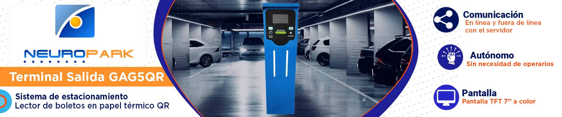 La estación de salida NeuroPark GAG5QR fue diseñado para cumplir con las necesidades más exigentes para la automatización de un estacionamiento. Identifica, controla y organiza desde el momento del ingreso a los grandes grupos de usuarios en un estacionamiento: Público General, Locatarios, Pensionados y Visitantes. Comunicación redundante entre las terminales de Entrada, Salida, Cajero Automático y Servidor para garantizar la continuidad operativa en caso de falla de red.